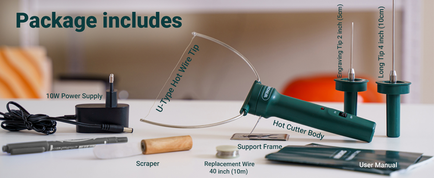 | Included Components | Handle with Power Supply (UL Certified), Hot Wire Tip, Hot Knife Tip, Engraving Tip, Replacement Wire - 42inch(107cm), Safety Stand |