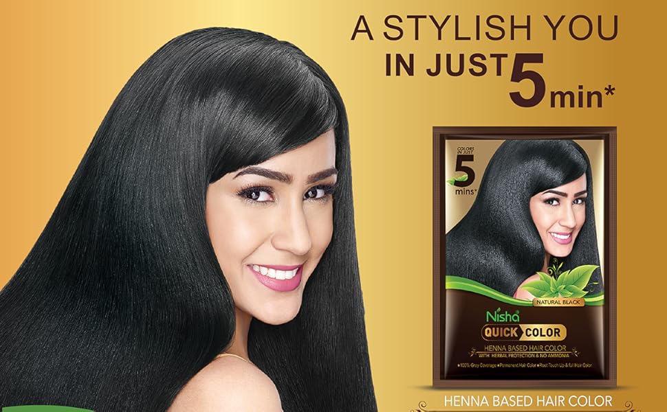 Nisha 10 Minute Quick Henna Powder Hair Colour is a fast-acting, organic henna-based hair dye that delivers 100% gray coverage in just 10 minutes. Free from ammonia, it offers a natural black shade that strengthens and smooths hair, suitable for both men and women seeking a safe, permanent color solution.