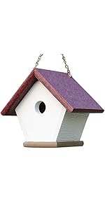 I love this birdhouse! Very well made - sturdy recycled plastic that holds up to the weather elements much better than my wood one! I like the style and durability as well as the way the hanging chain is attached to the top of the house. I know this birdhouse will be around for a very long time. I am considering buying another one.