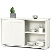The NAFORT Wooden Buffet Cabinet Sideboard is a modern farmhouse-inspired storage solution featuring a compact 42" x 13" footprint, adjustable shelving, and sliding glass doors. Designed for versatile use in kitchens, dining rooms, or entryways, it offers customizable interior space and stackable modularity, all built with durable engineered wood and metal hardware to ensure lasting functionality and style.