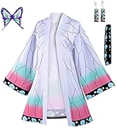 Haydory Womens Demon Slayer Cosplay Kimono Cloak Halloween Costume Cape (M, Full Set)-Multicolor, Synthetic
