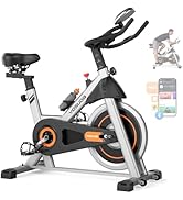 The YOSUDA Indoor Cycling Bike combines a 35 lbs flywheel and magnetic resistance system to deliver a smooth, quiet workout experience under 20 decibels. Designed for durability with a heavy-duty steel frame and adjustable ergonomic features, it supports users up to 350 lbs and heights from 4'8" to 6'1". Equipped with Bluetooth connectivity, a tablet mount, and an LCD display, it offers smart app integration for immersive training and entertainment. Safety features include adjustable cage pedals and an immediate flywheel stop lever, making it a reliable, comfortable, and tech-savvy fitness companion trusted by over 3 million families.