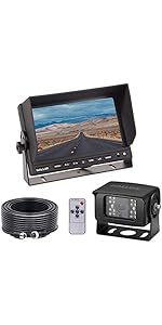 The Truck Backup Camera System features a high-resolution 1/3" CCD sensor delivering 800 TVL for vivid, natural color images. Rated IP69K, it guarantees waterproof performance in all weather conditions. Equipped with 18 infrared LEDs, it provides clear night vision up to 50 feet. The 7-inch LCD monitor offers an ultra-wide 130° viewing angle with adjustable guidelines and auto-dimming for optimal visibility anytime. Designed for heavy-duty vehicles, this system ensures enhanced safety and confidence while reversing.