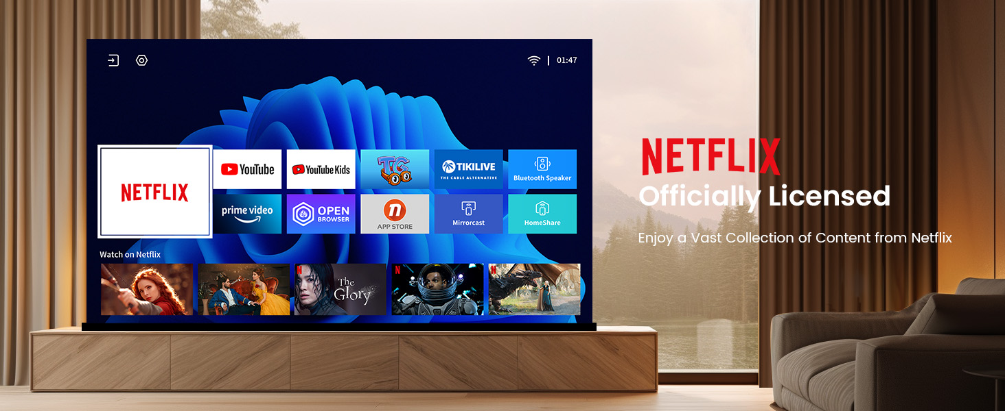 It only has Netflix and a few other apps. you need to connect a fire stick or a computer to be able to watch any other app. Cannot airplay with iPhone or cast directly from it In any way.Big and bulky and needs to be centered perfectly in the room. In my room if I hang it from the ceiling the screen is too high, it does not auto level or correct whatsoever. I need to keep it in a table in the middle of the couch. Afterwards I bought the samsung freestyle 2nd gen and loved it much more (you can just put it in a corner and aim it to the wall and the screens looks perfect and its small, and has all the apps etc etc).Image quality is amazing, but for me it turned out to be too much of a hassle for tv watching