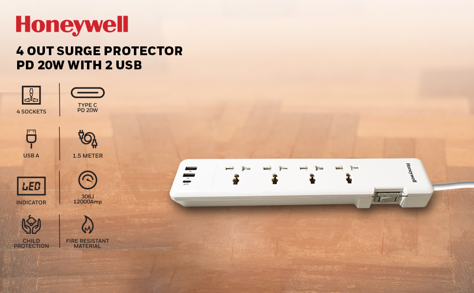 Surge Protector 4 Universal Sockets 2usb 1typec 12000amp 1 5mtr | Desertcart Denmark