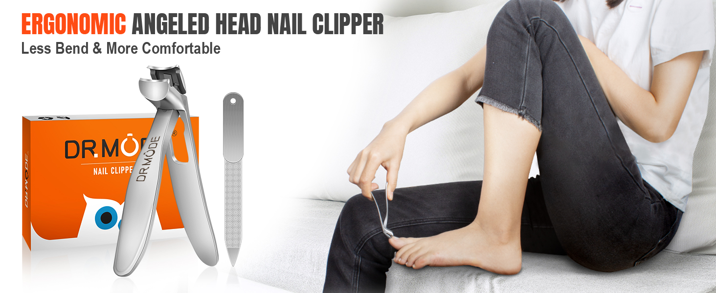 The DRMODE Angled Head Ergonomic Toenail Clippers are designed specifically for seniors and individuals with limited mobility. Featuring a unique 7-shape angled head for visibility, a wide opening for thick nails, and a long handle for comfort, these clippers ensure a precise and mess-free trimming experience. Made from durable stainless steel, they are perfect for anyone seeking an easy and effective nail care solution.