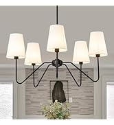 This 5-light brass gold chandelier features a polished finish and white fabric shades that create a warm, inviting atmosphere. With adjustable height from 30 to 60 inches and compatibility with multiple bulb types, it offers versatile lighting solutions for dining rooms, living rooms, bedrooms, and more. Easy to assemble and designed for durability, it’s the perfect blend of modern elegance and farmhouse charm.