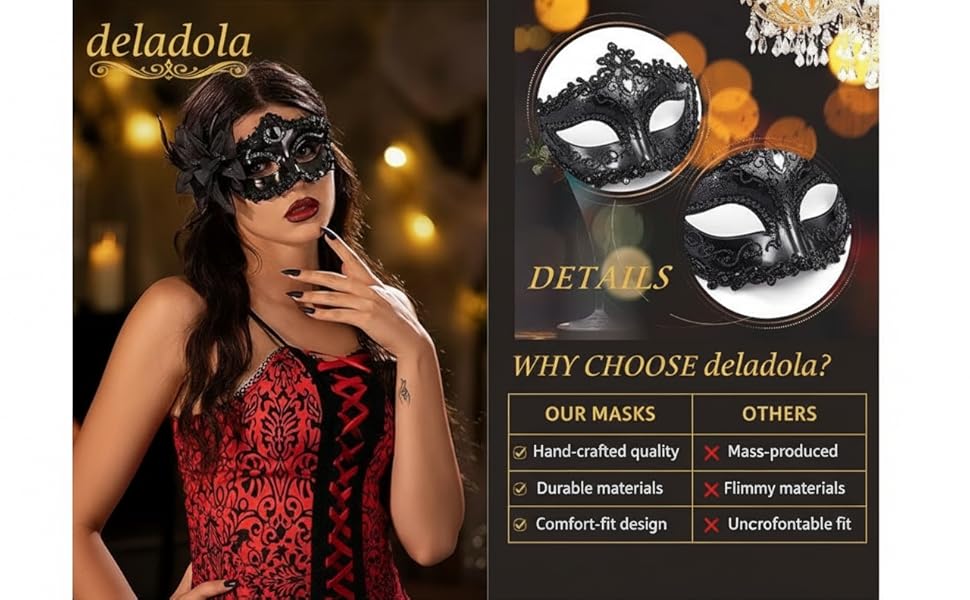 KASTWAVE Women Masquerade Mask 2 Pcs Black Venetian Masks Plastic Flower Party Prom Ball Costume Mardi Gras