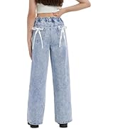 EXARUS Girls Jeans combine durable washed denim with breathable cotton for year-round comfort. Featuring a trendy ripped wide-leg cut and a high elastic waistband, these jeans offer a relaxed yet flattering fit. Designed with five functional pockets, they provide practical storage while matching effortlessly with casual and semi-casual outfits. Ideal for girls aged 6-14, these jeans run large, so sizing down ensures a perfect fit.