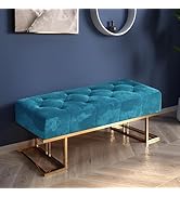 This modern green velvet ottoman bench combines a sturdy metal frame with plush corduroy padding, supporting up to 350 pounds. Measuring a space-smart 32" wide by 16" deep and 18" high, it’s a versatile, lightweight piece perfect for bedrooms, entryways, or living rooms. Designed for easy spot cleaning, it offers a stylish, durable seating solution that blends comfort with contemporary flair.