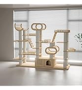 The KZLAA 94'' H Large Solid Wood Cat Tree is a multi-level cat tower designed for large adult cats, made from natural rubber wood and sisal. Weighing approximately 286.6 pounds, it features a top perch for optimal viewing, integrates play and rest areas, and boasts a stylish design that enhances your home decor. Easy to assemble and clean, this cat tree is the perfect blend of functionality and aesthetics.