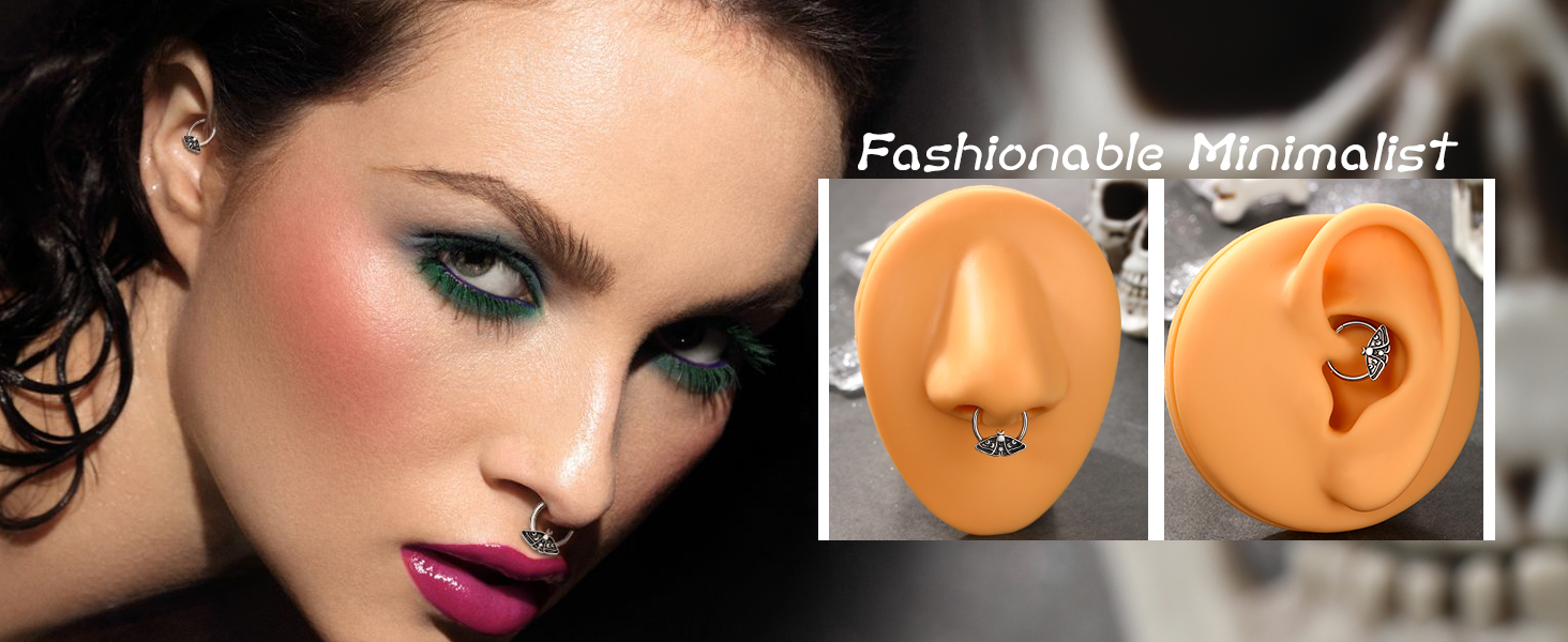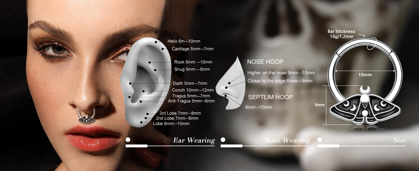Melighting16G Halloween Septum Ring Moth Helix Earring 316L Stainless Steel Daith Earring 10mm Septum Clicker For Women Gothic Cartilage Earring