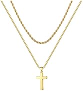 Layered Cross Necklace for Men - 18K Gold Plated Cross Necklaces Chain for Men Boys Gifts, Silver Rope Chain Necklace Jewelry 16 18 20 22 24 Inch, 16 inches, 18 inches, Stainless Steel, No