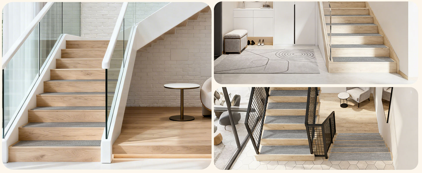 Stair Treads Non Slip for Wooden Steps Indoor 9" x 36" 15 Pack Extra Wide Stair Tread Carpet Stairs Runner, Step Pads with Reusable Adhesive for Dogs Kids Elders, Machine Washable, Light Grey