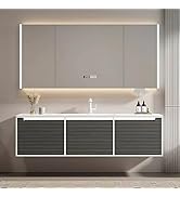 The ZGNBSD 68" floating bathroom vanity combines solid wood durability with a high-temperature fired ceramic sink and an LED smart defog mirror cabinet. Designed for modern living, it features wall-mounted installation for space efficiency, abundant storage with drawers and compartments, and customizable options backed by responsive after-sales support.