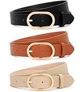 XZQTIVE Women Leather Belts for Jeans Pants Dresses Plus Size Ladies Waist Belts Fashion Gold Buckle Casual Leather Belts black brown waist belt Specification:Women Leather Belts Material: Soft faux leather and durable shiny gold buckle Belt Size Reference:S: 100 cm/ 39 inches, fit waist 25"-30"M: 110 cm / 43 inch, fit waist 31"-37"L: 120 cm/47 inch, fit waist 37"-42"XL: 130 cm/51 inch, fit waist 42"-47"2XL: 140 cm/55 inch, fit waist 48"-52"3XL: 150 cm/59 inch, fit waist 53"-57" Color:Black belt with gold buckleBlack belt with silver buckleBlack belt with black buckleBrown belt with gold buckleCoffee belt with gold buckle Mating for clothing:Fashion leather women belts perfect for your jeans, pants, dresses, shirts, coats and any outfit. Occasions: Daily wear, Office, Clubs, Parties, Travel, Dating, Shopping Packing List: 1 * women leather belt1 * hole punch tool Review: Blk belt - The belt looks great, but it does stretch some while you wear it. I had to readjust the belt throughout the day. Review: A bit thinner thickness - It fit!! It's a bit on the thinner side. Decent price at least