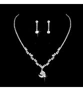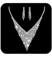 The Jakawin Bride Silver Bridal Necklace Earrings Set features a 20.1-inch crystal rhinestone choker and matching earrings crafted from high-quality alloy. Lightweight at 18 grams, this set is designed for comfort and elegance, perfect for weddings and special occasions. Expertly handcrafted with a smooth finish to prevent tangling, it offers versatile style and makes a memorable gift for brides and fashion-forward women alike.