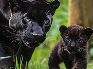 7pcs Black Panthers Figurines With Panther Cub And Tree Trunk | Desertcart Denmark